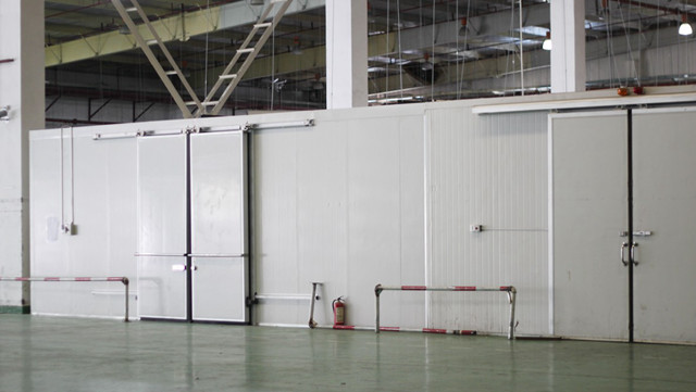 一、小型冷庫地面保溫方法相對(duì)簡單,由于小型冷庫對(duì)庫內(nèi)物品承重?zé)o特殊要求,一般使用與墻面保溫一樣聚氨酯冷庫板,這就是我們常說的六面體保溫(頂部+底部+四周墻面)。若儲(chǔ)藏的東西重,我們可采取聚氨酯冷庫板上鋪壓花鋁板的方法,等等,本實(shí)用新型避免了貨物過重對(duì)地面聚氨酯冷庫板造成損傷。