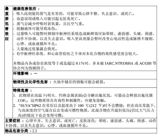 使用R404a制冷劑時材料安全數(shù)據(jù)表(參考)