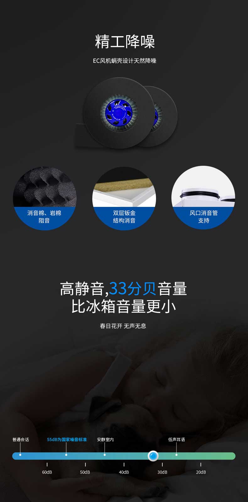 ● 精工降噪,33分貝,比冰箱更靜音